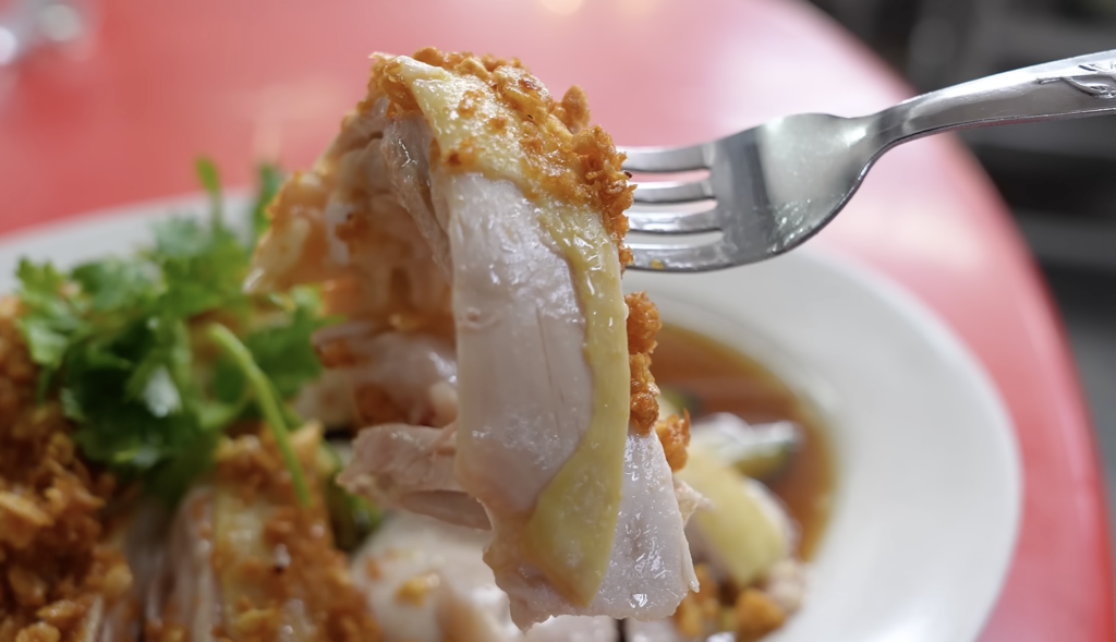 この店の最大の特徴は、すべての鶏肉を完全に骨から外して提供することだ。骨一本ないきれいに整えられたチキンライス。大人にとっては楽な食事であり、子どもにとっては安心の一食だ。
