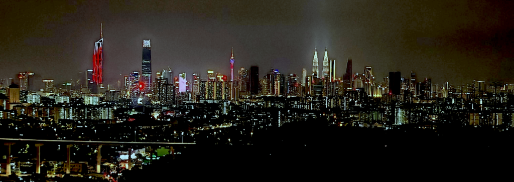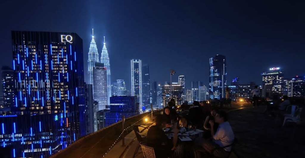 KL의 숨은 야경 포인트다. 바렘방(Berembang) 지역의 노동자 아파트 옥상에서 바라보는 KL 스카이라인은, 화려한 루프탑 바에서 보는 것과는 완전히 다른 감성이다.