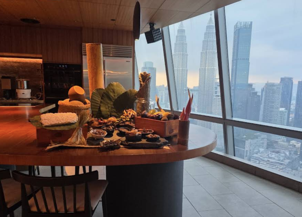 셰프 대런 테오가 이끄는 코스에는 보르네오 야생 허브, 사라왁 발효 재료처럼 평소 접하기 어려운 요소가 등장한다. 48층 뷰와 함께 식사를 한다는 점도 분명한 장점이지만, 진짜 인상적인 건 ‘이 나라에서만 가능한 맛’을 설계했다는 점이다.