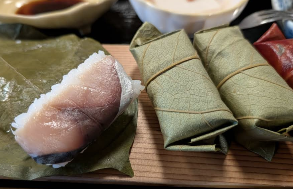 - 柿の葉寿司(카키노하 스시) — 감잎에 싼 압착 스시